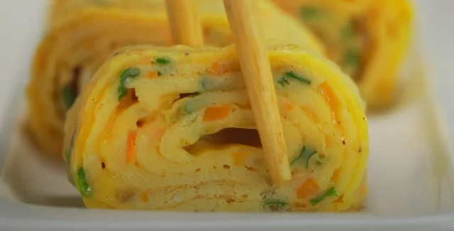 Тамаго-яки – традиционный японский омлет, который готовят особым способом. В его основе куриные яйца с молоком и мелко нарезанные овощи. Омлет готовится тонкими слоями, которые постепенно сворачивают в рулет. Он получается нежным и сочным, а рецепт приготовления позволяет добавлять в него пряности, овощи или сахар по вашему вкусу. Рекомендуем вам приготовить привычное блюдо по-новому и попробовать сделать Тамаго-яки по рецепту из кулинарного блога "Сборник рецептов".