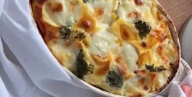 Благодаря брокколи, запеканка имеют нежную и мягкую консистенцию.