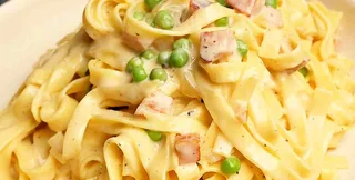Очень вкусно: паста с горошком и ветчиной в сливочном соусе
