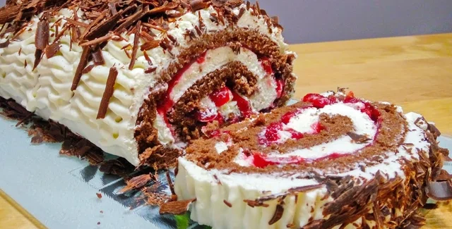 Торт "Черный лес" — один из самых популярных тортов в мире. Но его можно приготовить и в форме рулета. Крем можно использовать не только такой, как указано в рецепте. Идеально подойдет крем чиз, заварной, сметанный, или даже взбитые сливки.