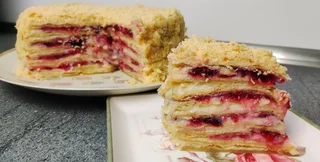 Классический десерт с оригинальным дополнением: рецепт "Наполеона" с малиной