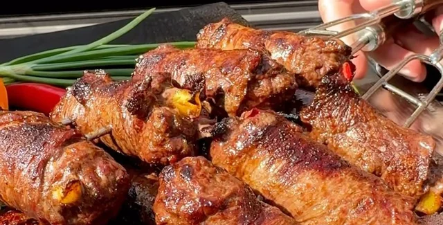 Сочная говядина в рулетиках на мангале