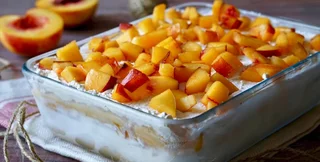 Персиковый тирамису, как и классический, готовится из печенья савоярди, которые вымачиваются не в кофе, а в персиковом соке. Разложенные слоями печенья покрывают нежным и роскошным кремом из маскарпоне с персиками. Рецептом поделились на сайте Cookist