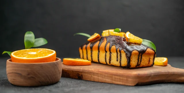 Испеченный апельсиновый кекс оставить на 10 минут в форме, чтобы он остыл. Готовый кекс можно посыпать сахарной пудрой. или полить шоколадом.