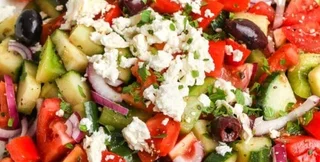Этот греческий салат, наполненный сочными помидорами, хрустящими огурцами, пикантным красным луком, оливками и сыром фета, поражает своим вкусом. Простую греческую заправку для салата можно использовать и для листовых зеленых салатов. Он идеально подходит для любого летнего пикника.