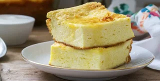 После приготовления достаньте молочника из духовки и дайте ему остыть, прежде чем покрывать его сахарной пудрой. Подавайте, нарезав на квадраты.