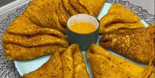 После выпекания дайте блинчикам остыть, посыпьте сахаром и подавайте. Подавать их также можно с джемами, сиропами, фруктами или различными сладкими соусами. Мы подали их просто так, с небольшим количеством сахарной пудры сверху.