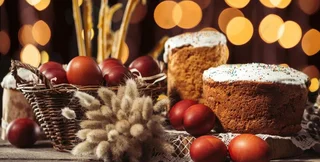 На Пасху главное блюдо — это сдобная пасха (или кулич). Выпечка с изюмом и "шапочкой" из сахарной глазури с яичными белками. Рецептов кулича очень много, а этот можно назвать базовым.
