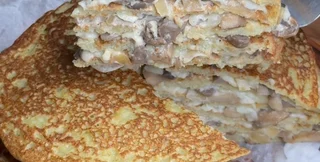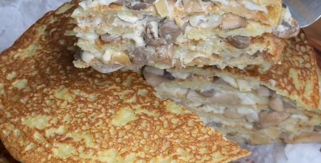 Картофельные оладьи, которые в народе называют деруны или драники, можно приготовить совершенно по-новому, придав им форму торта и добавив начинку.