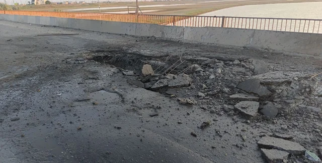 По данным росСМИ, Чонгарский мост поврежден в двух местах — снаряды "прошили" насквозь дорожное полотно, также поврежден и дублирующий мост через залив Сиваш. Сальдо уверяет, что восстановление моста займет не больше пары дней.