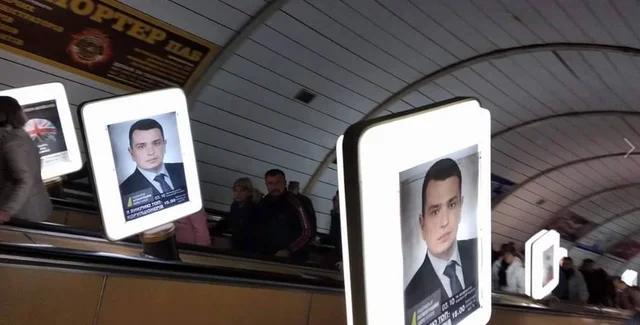 Реклама с фотографией директора Национального антикоррупционного бюро Артема Сытника появилась на ситилайтах в киевском метро 1 октября.