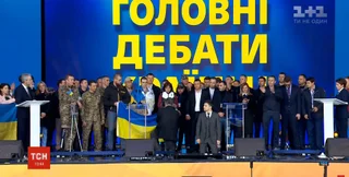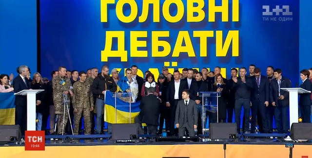 Час, обрамленный исполнениями гимна, пролетел быстро. И когда Зеленский покинул сцену, Порошенко на нее вернулся и произнес еще одну вдохновляющую речь, а затем пообщался с народом в студии UA:Першого на теледебатах, оплаченных из госбюджета. Владимир Зеленский, как и заявлял его штаб, туда не явился.