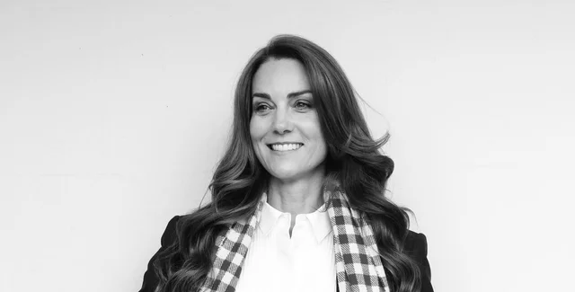 Подпись сопровождает фотография Кэтрин, которую можно назвать неформальной. На черно-белом снимке она запечатлена в белой рубашке, джинсах, На ней – темный блейзер и длинный легкий шарф в клетку. Волосы принцессы спадают красивыми волнами на плечи, и она улыбается, смотря мимо камеры.