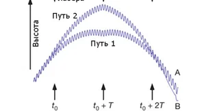 Успех эксперимента обеспечила огромная частота волны де Бройля, примерно равная 3•1025 Гц. За 0,3 с свободного падения волны материи на верхней и нижней траекториях накапливают разность "ощущаемого" ими времени всего в 2•10-20 секунды, но их колоссальная частота и высокое качество интерферометра позволили достичь точности измерений в 7•10-9.