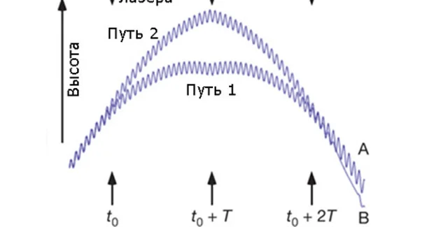"Если бы время свободного падения было увеличено до 14 млрд. лет (возраста Вселенной), разность времен на верхней и нижней траекториях составила бы тысячную долю секунды", - заявил участник исследования Хольгер Мюллер.