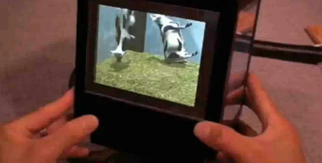 Данное устройство представляет собой куб, в котором пять граней из шести заняты ЖК-экранами. Благодаря встроенному акселерометру pCube определяет свою ориентацию в пространстве и проецирует на разные грани трехмерную сцену с разных ракурсов.
