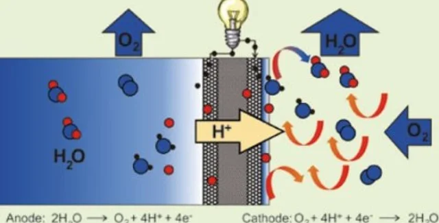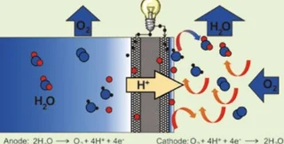 Устройство, предложенное группой исследователей из Университета Штутгарта в Германии, во многом напоминает знакомые многим водородные топливные элементы, в которых происходит прямое преобразование энергии окисления водорода кислородом до воды в электричество. На одном из электродов этого устройства происходит диссоциация молекул водорода с образованием протонов и электронов, а на другом - формирование активных частиц кислорода и образование молекул воды с их участием. Разница в энергии этих процессов и определяет энергетическую эффективность подобных устройств.