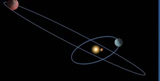 Астрономы с помощью орбитального телескопа "Хаббл" обнаружили планетную систему, в которой орбиты планет не лежат в одной плоскости, как в Солнечной системе, а повернуты под большим углом друг к другу