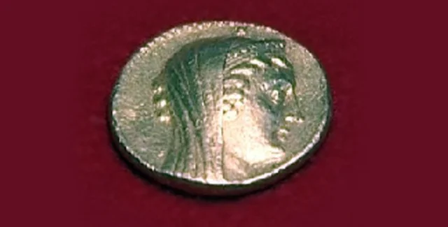 На монете предположительно изображена царица Клеопатра I, жена Птолемея V. Он управлял Египтом с 205 по 180 год до нашей эры.