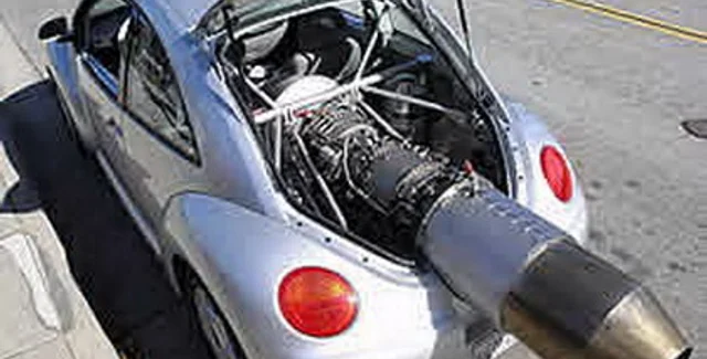 Volkswagen New Beetle с самолетной турбиной на корме заставил заткнуть уши студентов Высшей технической школы в Детройте