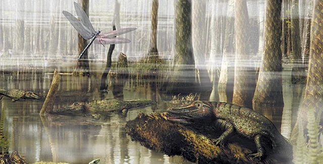 Глобальное потепление, 300 млн. лет назад уничтожившее тропические леса, вызвало эволюционный взрыв среди рептилий и открыло путь для возникновения динозавров 100 млн. лет спустя