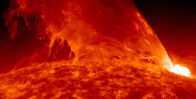По словам специалистов, камеры аппарата SDO снимают поверхность светила в сверхчетком формате SuperHD, благодаря чему есть возможность рассмотреть выброс во всех деталях.
