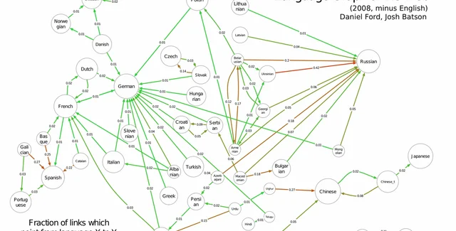 Также, специалисты Google решили проверить, сайты с какими языками взаимосвязаны между собой больше, чем можно было ожидать. Для этого они подсчитали для каждого языка теоретическое количество переходов на сайты с другим языком. Наиболее интересным является аномально большое количество ссылок на украинские сайты с сайтов на языке хинди.