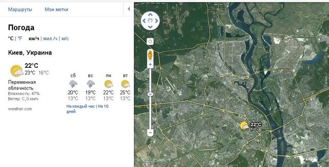 На картографическом сервисе Google Maps появился слой с данными о погоде