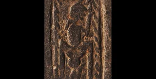 Фрагмент был обнаружен аспирантом Уильямом Наттом из Университета штата Техас в Арлингтоне (США). Предмет четыре на три сантиметра изготовлен из буккеро; украшения разнообразны - от абстрактных геометрических мотивов до изображений экзотических и мифических животных.