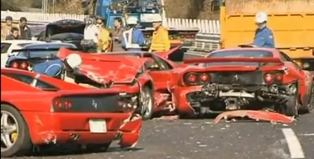 В Японии произошла одна из самых дорогих в мировой истории аварий. Восемь Ferrari, три Mercedes-Benz, одна Lamborghini и два автомобиля среднего класса столкнулись на скоростной трассе в префектуре Ямагути