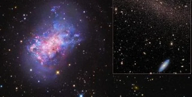 Ученые наблюдали за карликовой галактикой NGC 4449, расположенной в созвездии Гончие Псы, на расстоянии 12,5 млн. световых лет от Земли, пишет Lenta.ru. Эта галактика по своим размерам напоминает Магеллановы облака – карликовые спутники нашей галактики, Млечного Пути. Данные астрономы получали с помощью телескопа Subaru, расположенного на потухшем вулкане Мауна-Кеа на Гавайских островах.