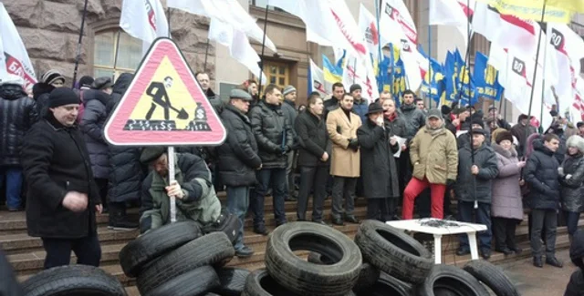 Сегодня, 6 февраля, представители партии Батьківщина и общественные активисты раскидали под зданием Киевской городской государственной администрации десятки шин, требуя от столичной власти предусмотреть в бюджете города необходимые средства на ремонт транспортных магистралей.