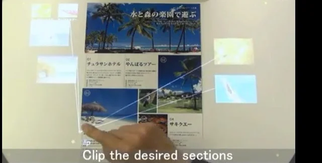 На демонстрационном видео компании можно увидеть, как пользователь с помощью пальца выделяет участки на бумажном проспекте, который лежит на столе. Компьютер сканирует и добавляет эти участки в память. Кроме того, показана опция дополнения печатного изображения цифровой графикой, а также сканирования текстов.