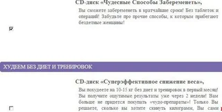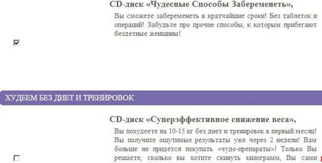 Веб-страницы такого рода включают множество восторженных отзывов от благодарных "клиентов", которые якобы испытали предлагаемые услуги и остались невероятно довольны полученными результатами. "Курсы" для тех, кто стремится забеременеть, рассылаются на компакт-дисках, цена которых может колебаться от $30 до $100. Касательно лечения туберкулеза жуками, то стоимость полного курса "лечения" может доходить до $8 тысяч, а сами насекомые продаются килограммами.