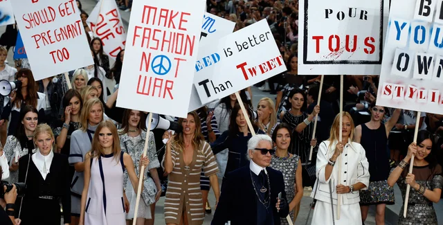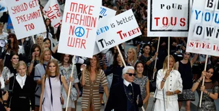 Самым ярким моментом стала "акция протеста", устроенная Карлом Лагерфельдом на показе Chanel, манекенщицы в дизайнерских костюмах вышли на улицы с плакатами, агитирующими за права женщин.