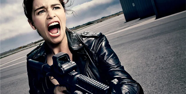 Затем из жидкого металла восстает форма женщины, что оказывается Сарой Коннор с шотганом, матерью лидера сопротивления Джона Коннора. В "Терминатор: Генезис" ее играет Эмилия Кларк, Мать драконов в "Игре престолов", а теперь и "Мать сопротивления" во вселенной Терминатора.