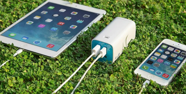 Два USB-разъема — еще один плюс. При этом они разной мощности: 1А — для зарядки смартфонов, 2А — для планшетов. Устройство с легкостью заряжает одновременно iPhone и iPad. Мне удалось на одном полном заряде устройства дважды зарядить iPhone 5S и iPad 4. Впечатляет.