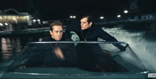 Берлин 1963 года. В кадре позорная стена, разделяющая Берлин на две части. Пропускной пункт Чекпойнт Чарли. Стильный красавчик Наполен Соло (Кавилл) – американский шпион. Он направляется в зону советского влияния, за ним тайно следует рыжий парень в кепке. Это Курякин – советский агент. Играет его Арми Хаммер – правнук "официального друга" СССР Арманда Хаммера – того самого американца с одесскими корнями, который видел Ленина и делал бизнес в СССР: открывал заводы и фабрики, скупал по дешевке яйца Фаберже и толкал их по спекулятивной цене на Западе.