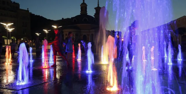 В фонтане 41 струя. Центральная самая высокая - 6 метров, остальные 40 расположены по кругу тремя рядами. Каждая струйка разноцветная - снизу возле форсунок их подсвечивают лампочки. Фонтаном управляет компьютерная программа