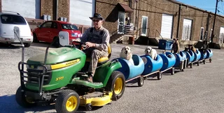 Юджин Бостик смастерил собачий поезд из пластиковых бочек