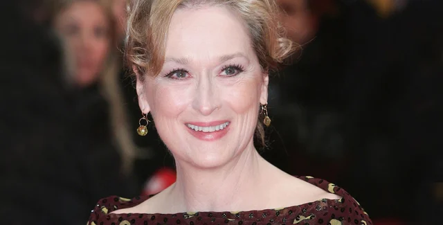 Стройная и элегантная 66-летняя блондинка Мерил Стрип красовалась в провокационно узких дневных платьях чуть ниже колен, в юбках, подчеркивающих бедра, и вечерних нарядах с глубокими декольте и открытыми плечами.