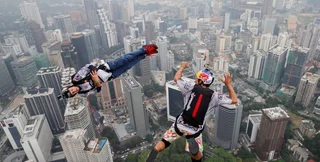 Такой вид спорта называется бейсджампингом. Из-за высокой травматичности он относится к крайне экстремальным. Минимальная высота для прыжка с таким парашютом составляет 100-150 метров. Киевские парашютисты прыгнули максимум с 85 метров.