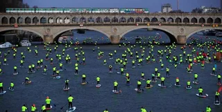 Дело в том, что в столице Франции сегодня прошел самый большой в мире сапсерфинг (заплыв на весельной доске), который в этом году прошел в Париже уже в девятый раз.