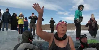 Новосибирская пенсионерка Любовь Зозуленко, которой 77 лет, не просто окунулась в купель, а устроила заплыв подо льдом Байкала.