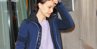 Натали Портман была неожиданно встречена толпой папарацци во вторник, 19 февраля, когда она покидала отель The Mark Hotel на Манхэттене со своей семьей.