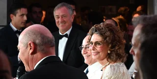 На церемонию 84-летняя актриса пришла в платье цвета слоновой кости, расшитом бисером. Смелое декольте украшал крест в цветах итальянского флага, бриллиантовое колье и брошь в виде цветка.