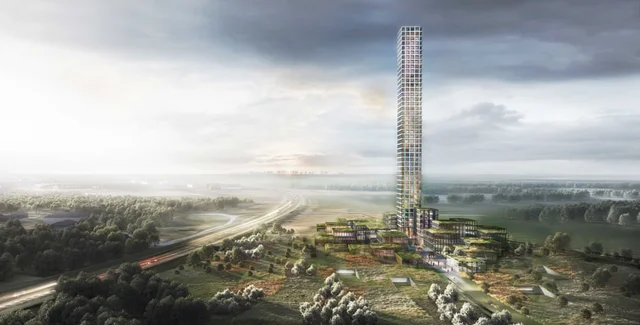 Ожидается, что огромный небоскреб, воздвигнутый посреди равнины, будет виден с расстояния в 60 километров.