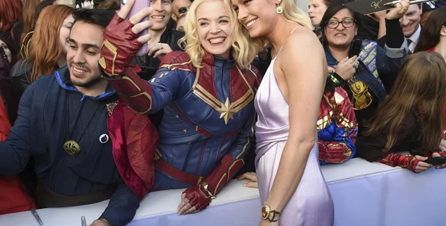 Актриса Бри Ларсон, сыгравшая Капитана Марвел, дополнила наряд браслетом и кольцами, имитирующими Перчатку Бесконечности титана Таноса.