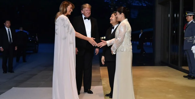 - Перед императорским дворцом в Токио для четы Трампов расстелили красные ковровые дорожки и их встретил почетный караул. Император Японии и императрица Масако лично приветствовали Дональда и Меланию Трам перед тем, как вместе удалиться во дворец.