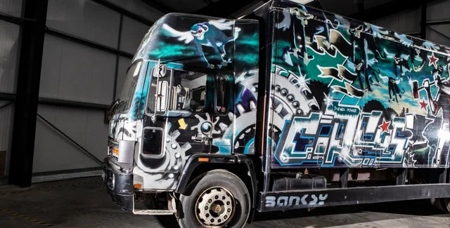 На то, чтобы покрыть весь грузовик рисунками, у Бэнкси ушло две недели. Сейчас за него могут выручить полтора миллиона фунтов стерлингов.